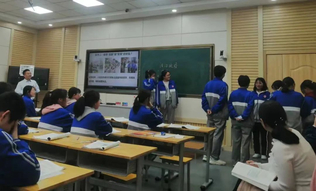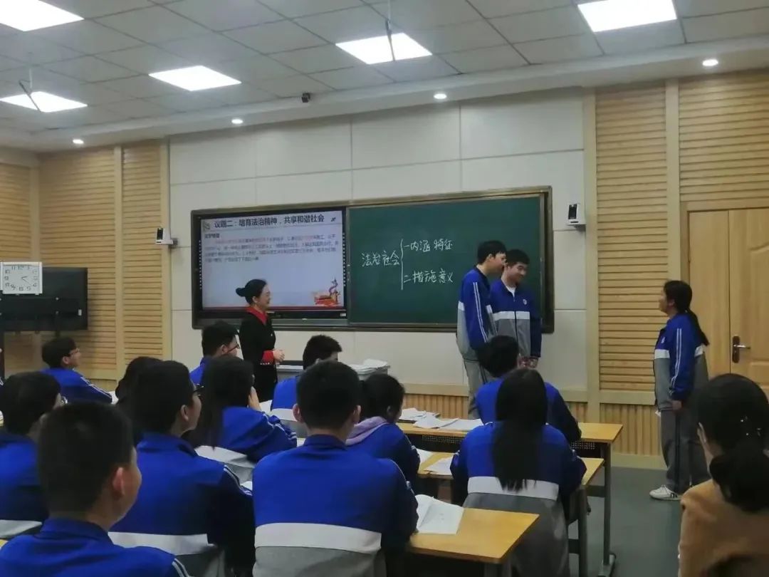 2023年临沂市高中思政优质课展评活动现场会在郯城一中成功举行山东省郯城第一中学2年前发布关注私信08810 (2023年第38期/总第564期) 为充分展示交流全市新课标、新教材实施背景下课堂教学研究成果,更好发挥思政课立德树人“关键课程”作用,4月11日至14日,临沂市高中思政优质课展评活动现场会在郯城一中成功举行。 本次评选的专家评委由市教育科学研究院政治教研员傅石灵带队,设置了《政治与法治》的“法治国家、法治政府、法治社会”三个课题,来自各县区的41位优秀教师根据抽签顺序依次展示研课成果。 参评老师在深入研究课程标准的前提下,结合教学实际,创新教学设计思路,积极探索基于情境和问题导向的互动式、启发式、探究式、体验式课堂教学,重视学生参与活动的过程和体验,促进学生核心素养的养成。 傅石灵强调,要充分发挥思政课在思想政治教育中的主渠道作用,提高思政课的吸引力与感染力,浸润学生的心灵,培养德智体美劳全面发展的社会主义现代化国家的建设者和接班人。 THE END学校新闻 点赞10 分享QQ空间微博QQ好友海报分享复制链接收藏