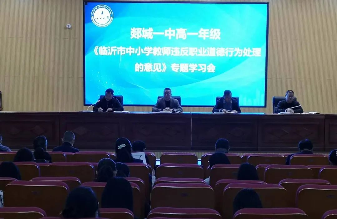 教师是立校之本,师德是教育之魂。为认真贯彻落实习近平总书记关于师德师风的重要指示精神,加强师德师风建设,规范从教行为,保障教师、学生的合法权益。10月9日,郯城一中在第二会议室举行“师德师风政策宣传月”启动仪式,学校中层正职以上领导干部参加本次会议。
